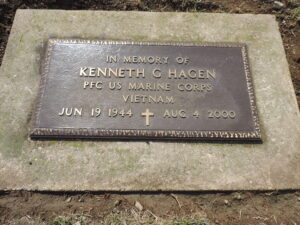 • Chester Earl Hagen, Jr. born August 8, 1941 in Chicago, Cook County, IL; Navy Veteran; served during the Bay of Pigs, earned Armed Forces Expeditionary Medal; married Kathy (Settles) Struck, daughter of William S. Settles (1925-2001) and Shirley (Kaiser) Settles (1927-2010); Chester died February 19, 2005 in Elgin, Kane County, IL (See section pertaining to Chester Earl Hagen, Jr. buried in the Fort Hill Cemetery)